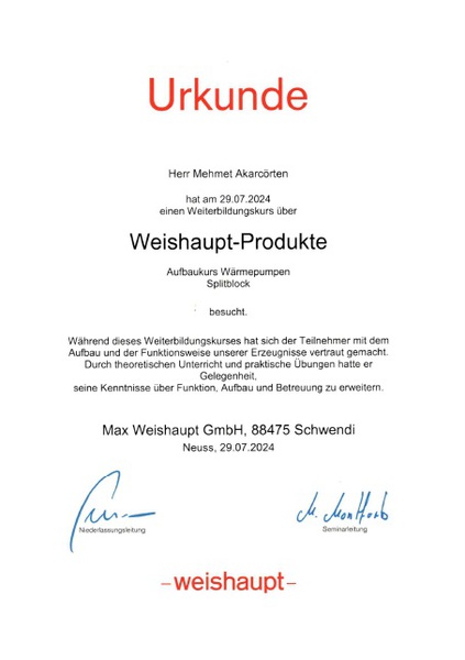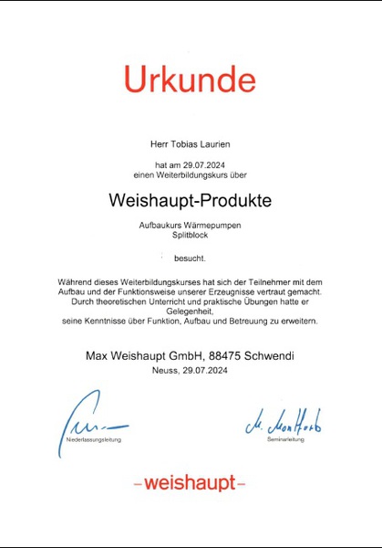 Wir arbeiten seit Jahren sehr erfolgreich mit den Produkten der Fa. DAIKIN und Weishaupt.
